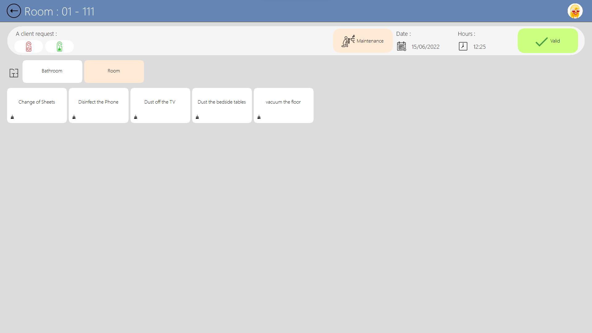 Su un tablet o un computer gestisce la pulizia delle camere