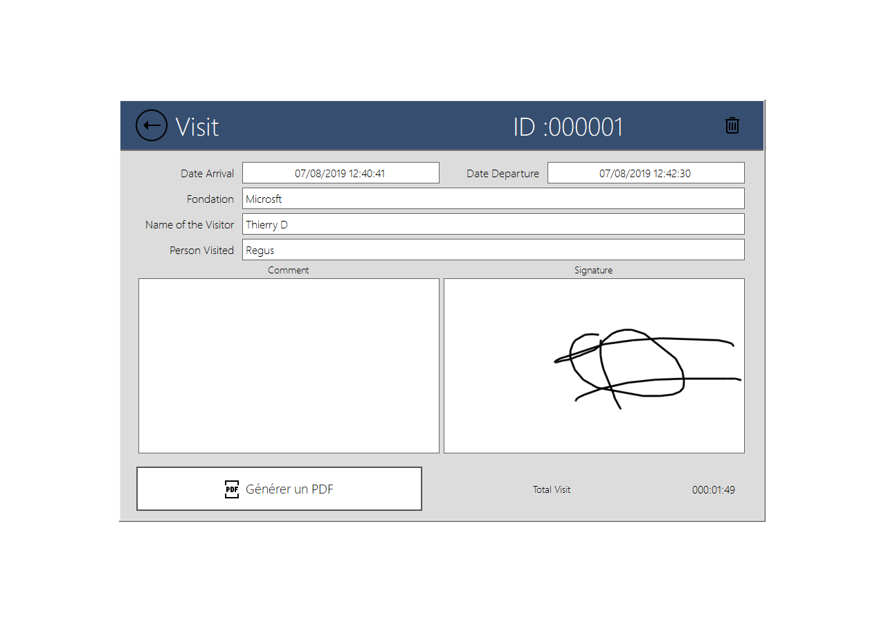 Pode ajustar o modo de registo dos visitantes: Empresa, Contacto, Pedido de assinatura, Comentário, Seleção da pessoa visitada; pode adicionar fotos ao contacto da empresa e ao serviço (Comercial, Marketing, Técnico...)