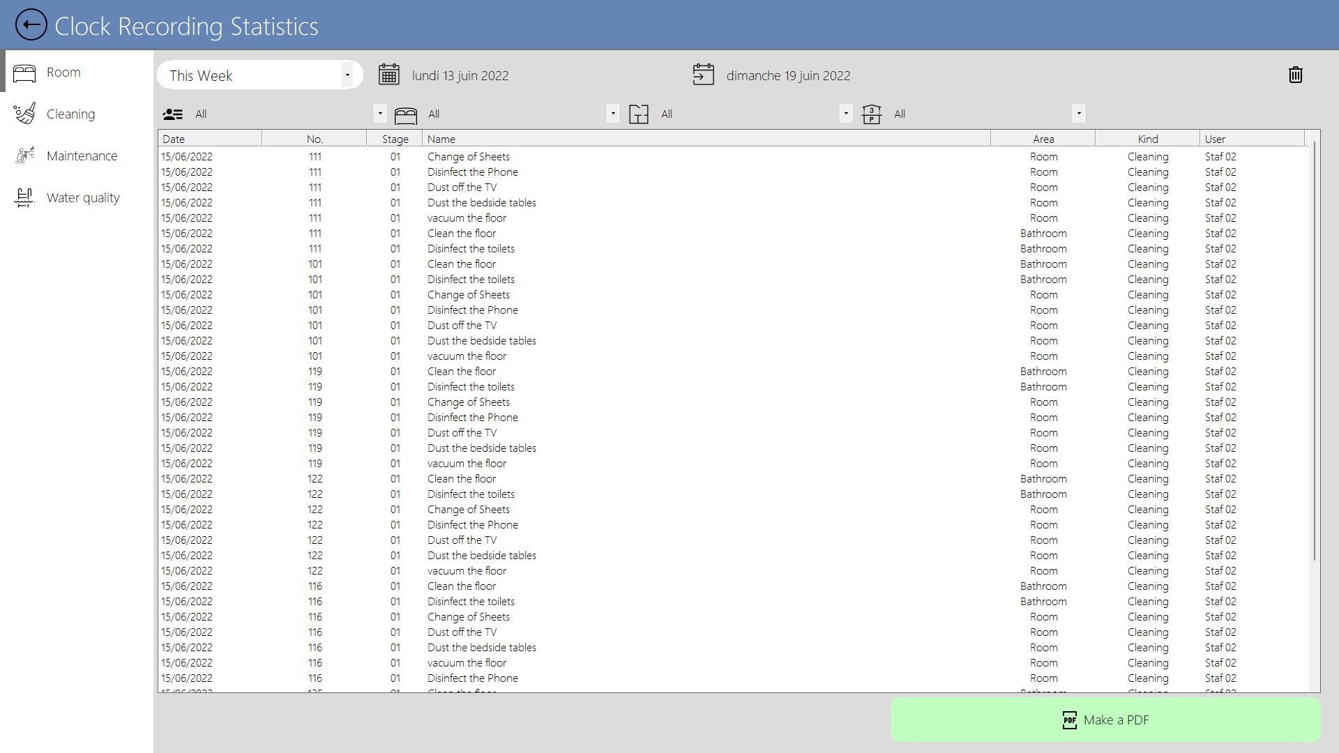 Può creare quante camere, luoghi di pulizia e utenti
