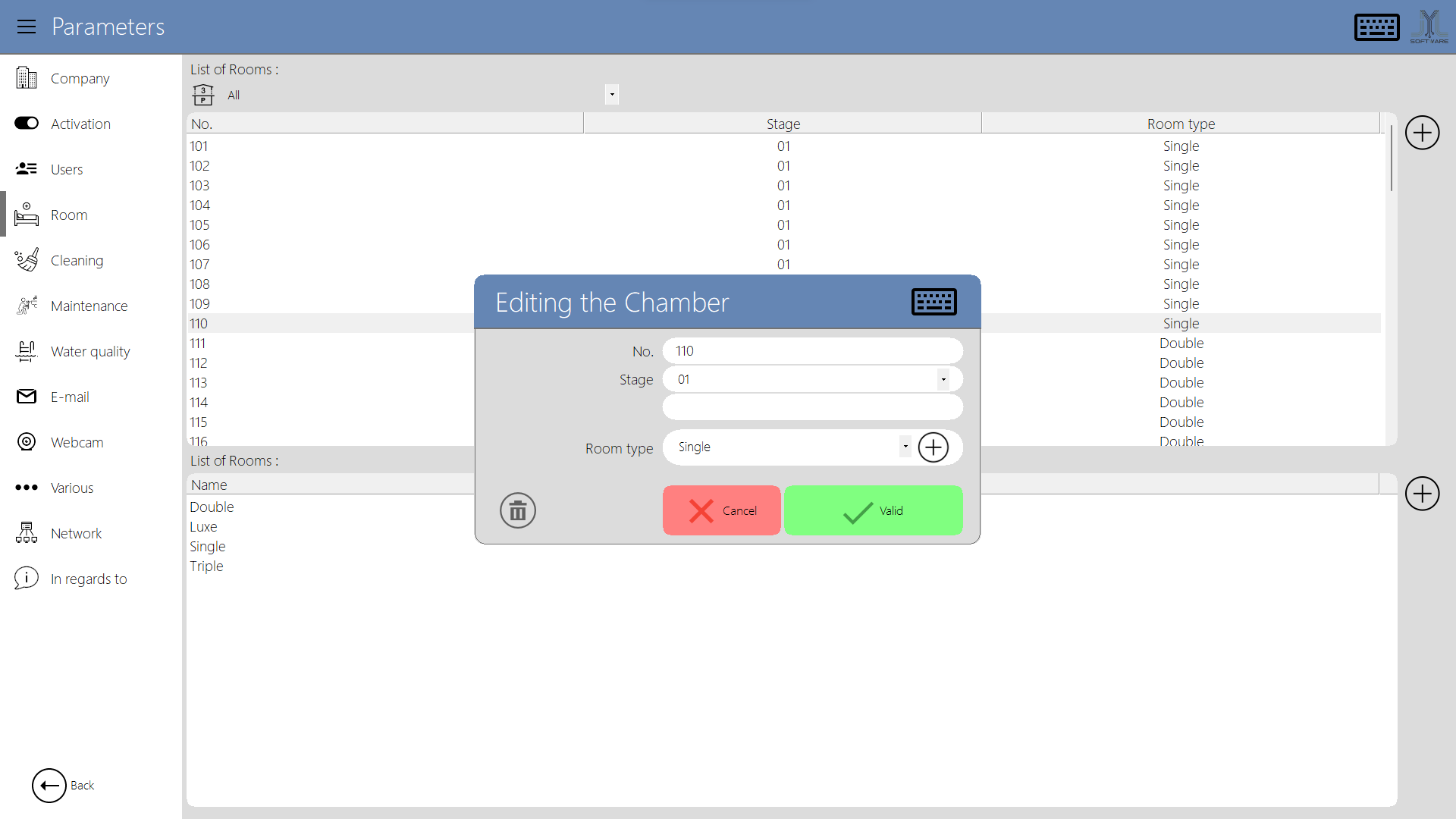 Pode criar quantos quartos, locais de limpeza e utilizadores