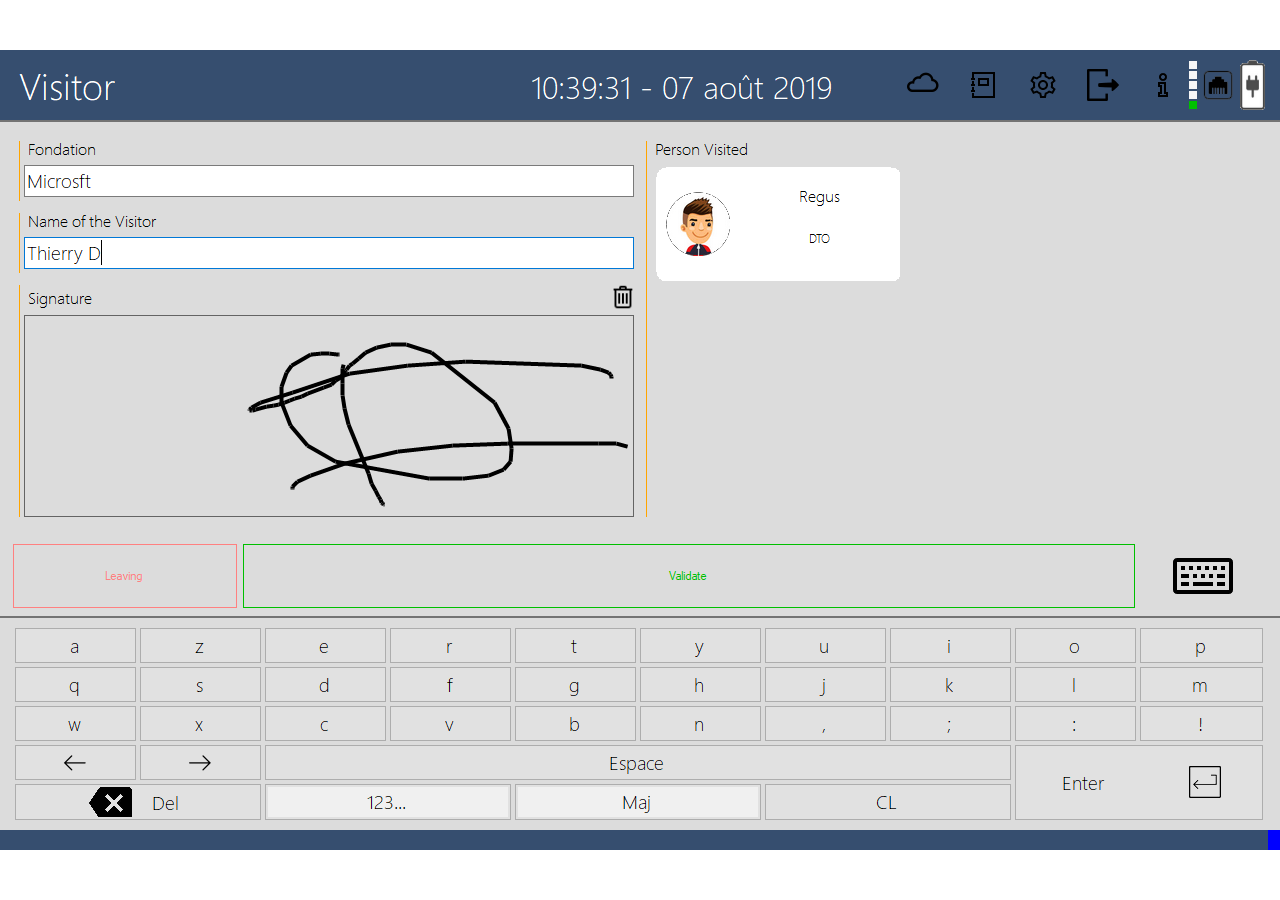 Pode ajustar o modo de registo dos visitantes: Empresa, Contacto, Pedido de assinatura, Comentário, Seleção da pessoa visitada; pode adicionar fotos ao contacto da empresa e ao serviço (Comercial, Marketing, Técnico...)